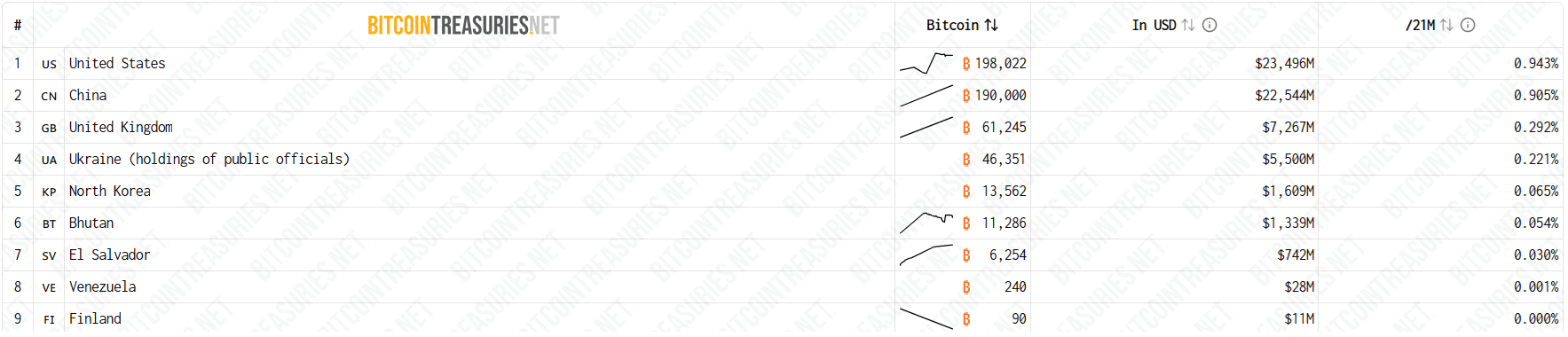 Země držící nejvíce bitcoinů