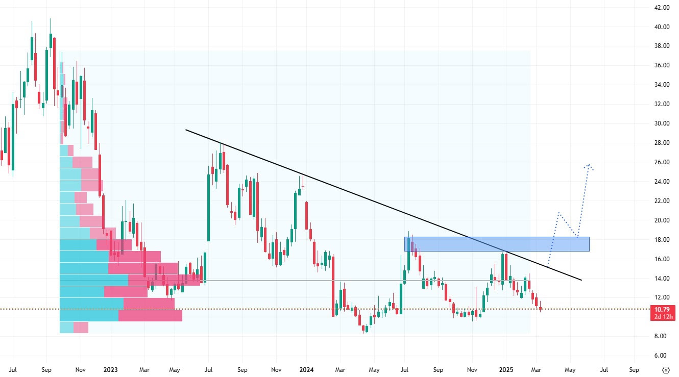 Pokud by se jim v budoucnosti podařilo prolomit cenový vrchol na 18 USD, otevřely by si tím dveře k opětovnému růstu.
