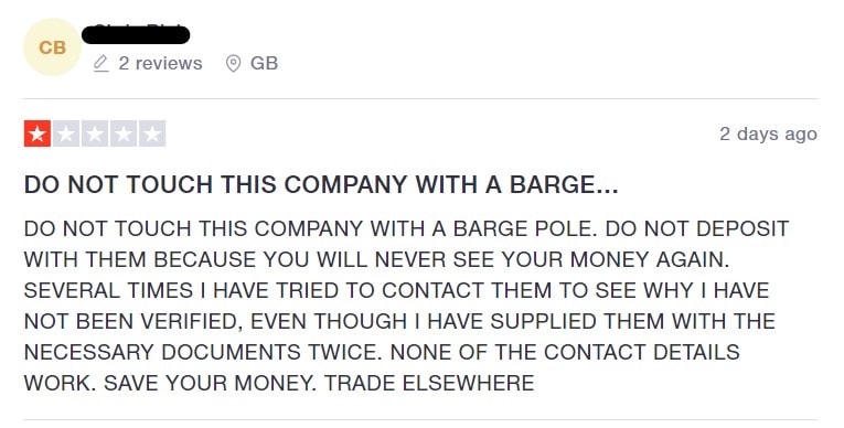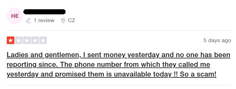 Velká část uživatelů popisuje stejné zkušenosti, podle kterých s nimi broker přestane komunikovat ihned poté, co převedou peníze na svůj obchodní účet. V jiných případech zase společnost neustále prodlužuje verifikaci, kterou vyžaduje pro povolení výběru z účtu. Jelikož se jedná opravdu o nový projekt, začaly se negativní recenze objevovat především v posledním měsíci, což bohužel bude pravděpodobně pouze předvoj a poškozených uživatelů bude mnohem více.