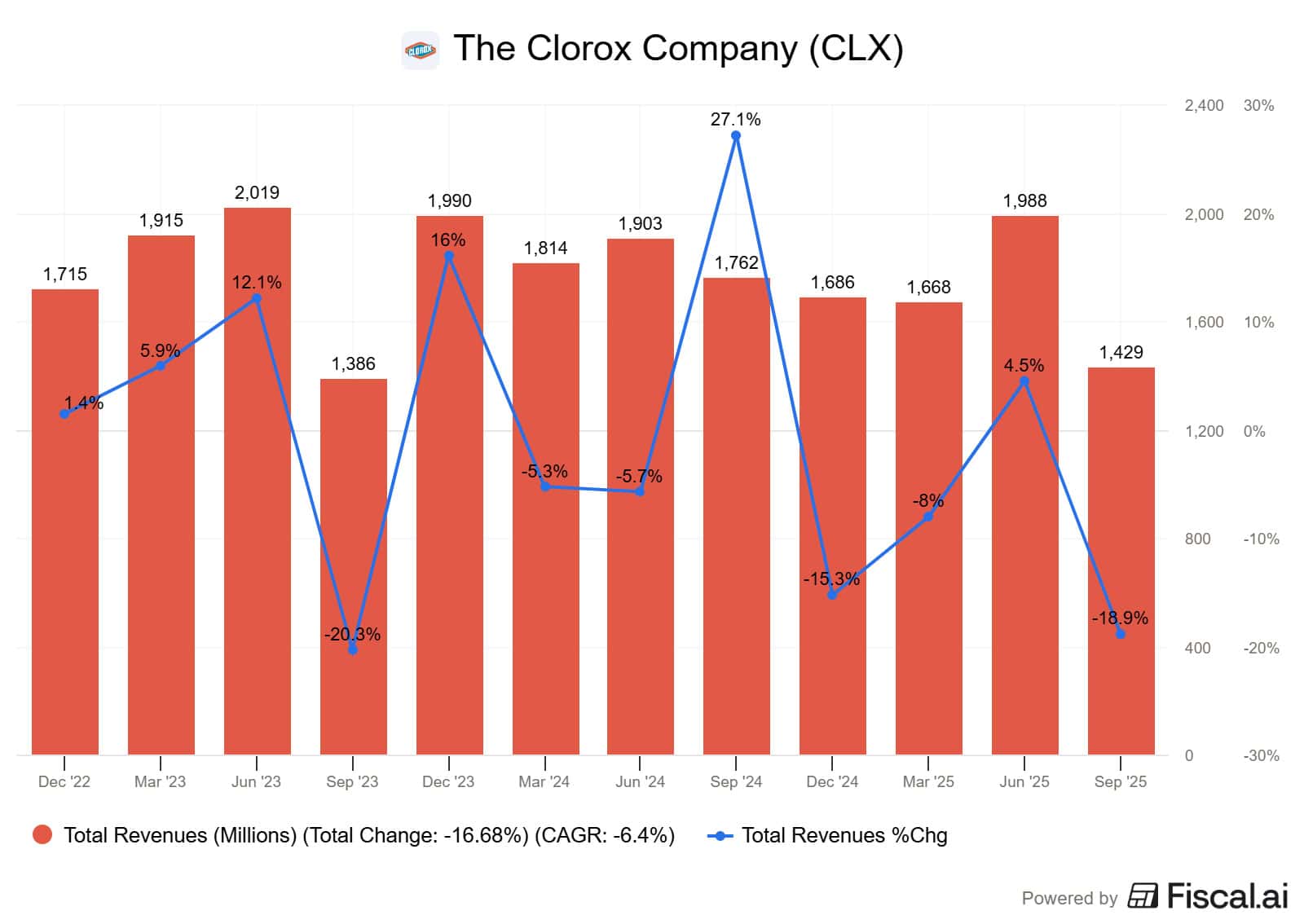 Celoroční tržby Cloroxu v poslední době stagnují a mají mírně klesající tendenci.