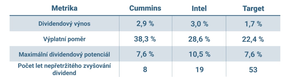 Všimněte si, že přestože společnost Intel nemá nejvyšší dividendový výnos, má nejvyšší maximální dividendový potenciál založený na dividendovém výnosu vyděleném výplatním poměrem. Podobně má společnost Target dividendový výnos přibližně o jeden procentní bod nižší než společnost Cummins, ale mají srovnatelná potenciální maxima.