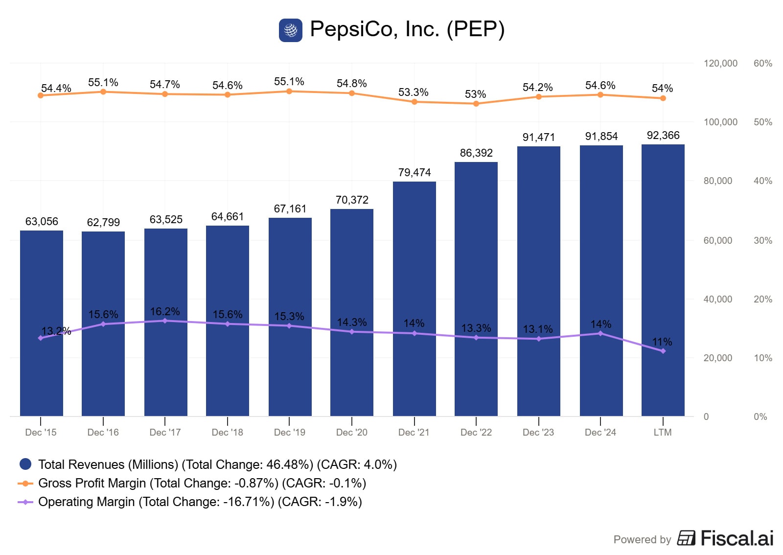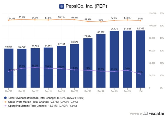 PepsiCo generuje roční tržby přesahující 91 miliard USD.