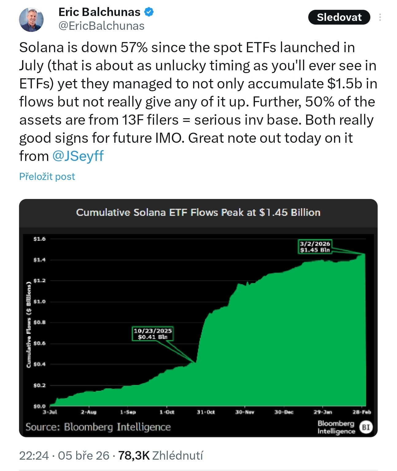 Balchunas tuto investorskou strukturu označil za “seriózní investorskou základnu”, což může být podle něj pozitivní signál pro budoucí vývoj celého ekosystému.