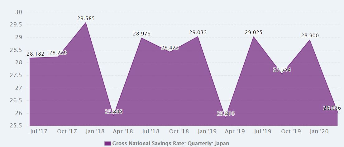 Vysoká míra domácích úspor v Japonsku, která za posledních 40 let dosahovala v průměru ohromujících 30 %, také znamená, že v zemi vycházejícího slunce panuje obrovská poptávka po státních dluhopisech.