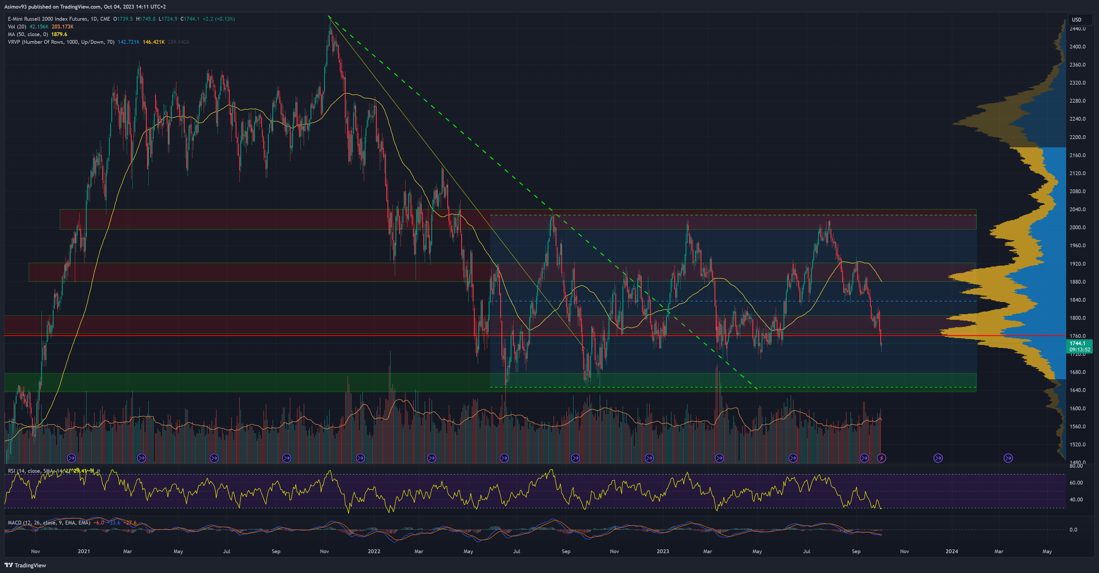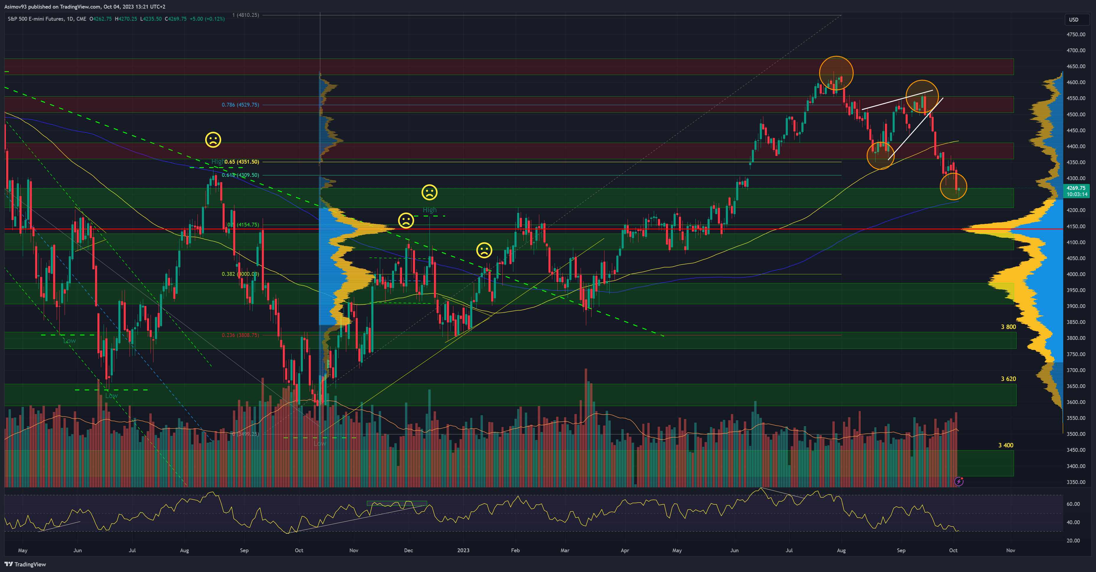 Technicky to ještě neznamená potvrzení změny trendu zpátky na medvěda, ale je to rudý praporek pro každého býka. Osobně očekávám, že po těch čerstvých propadech přijde retracement a poté bude pokles nejspíš pokračovat k úrovním blízkým point of control na volume profile kolem 4 140 bodů.
