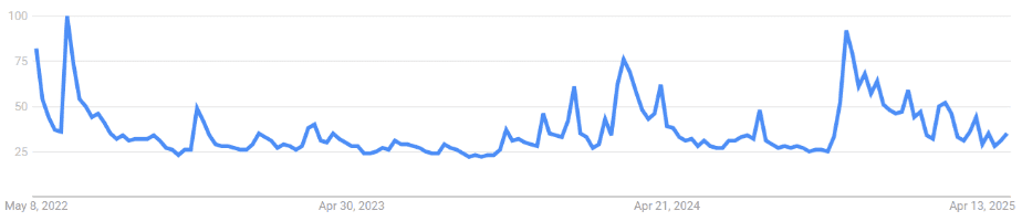Současné trendy vyhledávání slova “Bitcoin” se vracejí na úroveň z června 2024, kdy se cena tohoto aktiva pohybovala kolem 66 000 dolarů.