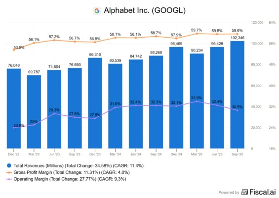 Čtvrtletní tržby a marže Alphabet