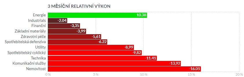Graf relativní výkonnosti jednotlivých tržních segmentů za poslední 3 měsíce