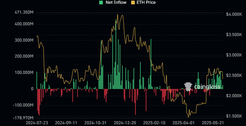Od 16. května tak do Etherea přes jeho ETF bylo zainvestováno celkem 840 milionů dolarů, což odpovídá 25 % celkového přílivu kapitálu od spuštění těchto produktů v červenci 2024.