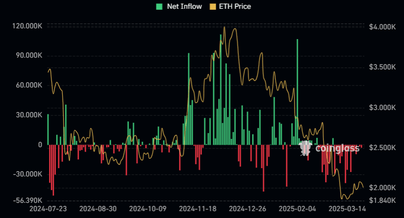 Ethereum (ETH) se opět vrátilo na úroveň podpory 2 000 dolarů během pondělí, i když nadále zůstává 18 % pod hranicí 2 500 dolarů, které dosáhlo před třemi týdny.