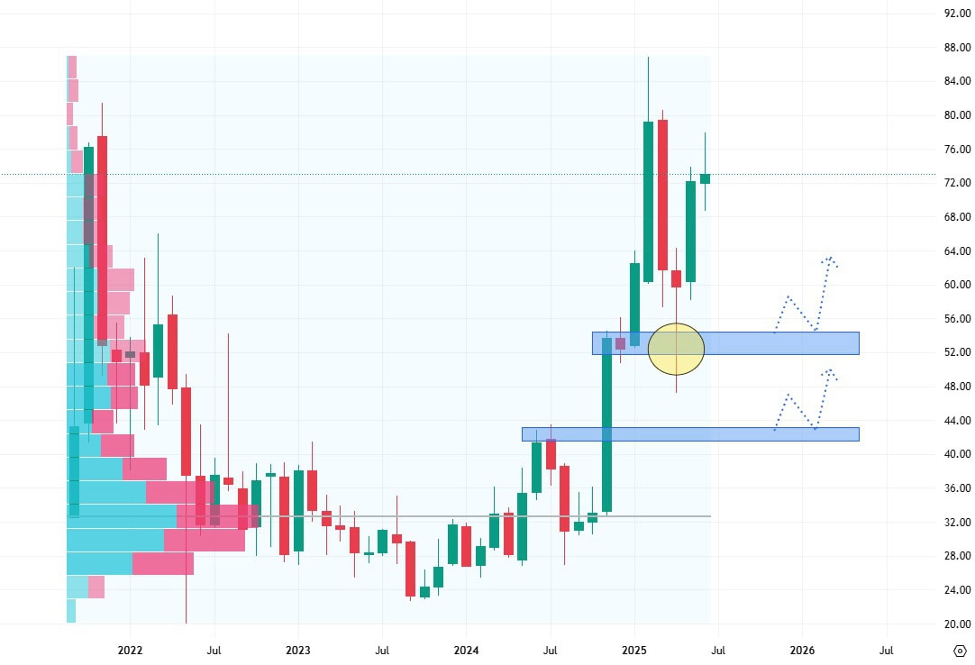 Pokud se akciím bude i nadále dařit, nemají na vyšších cenových úrovních žádnou rezistenci, pouze své cenové maximum.