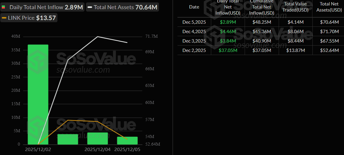 Chainlink má na trhu své první ETF, které se těšilo poměrně slušným přílivům kapitálu.