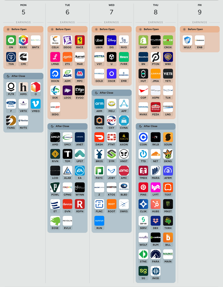 Třeba hned v pondělí bude reportovat po uzavření trhů své výsledky Palantir. Velmi očekávané jsou ale i úterní výsledky AMD, středečním Arm Holdings nebo čtvrteční výsledky Coinbase.