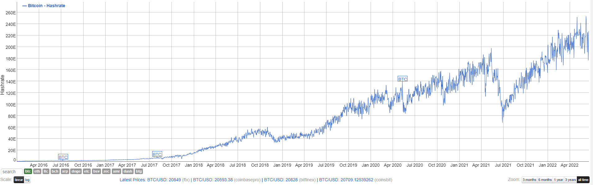 Tento bearmarket je však podle některých odborníků odlišný. Poprvé se stalo, že se BTC obchodoval pod vrcholem předchozího cyklu, který byl stanoven v prosinci 2017, což bylo 20 000 dolarů. Počet BTC na burzách v posledních dnech výrazně klesá a to je přesný opak, než se dělo při bearmarketu v roce 2018. Dále roste hashrate BTC, který se nachází stále blízko historických maxim.