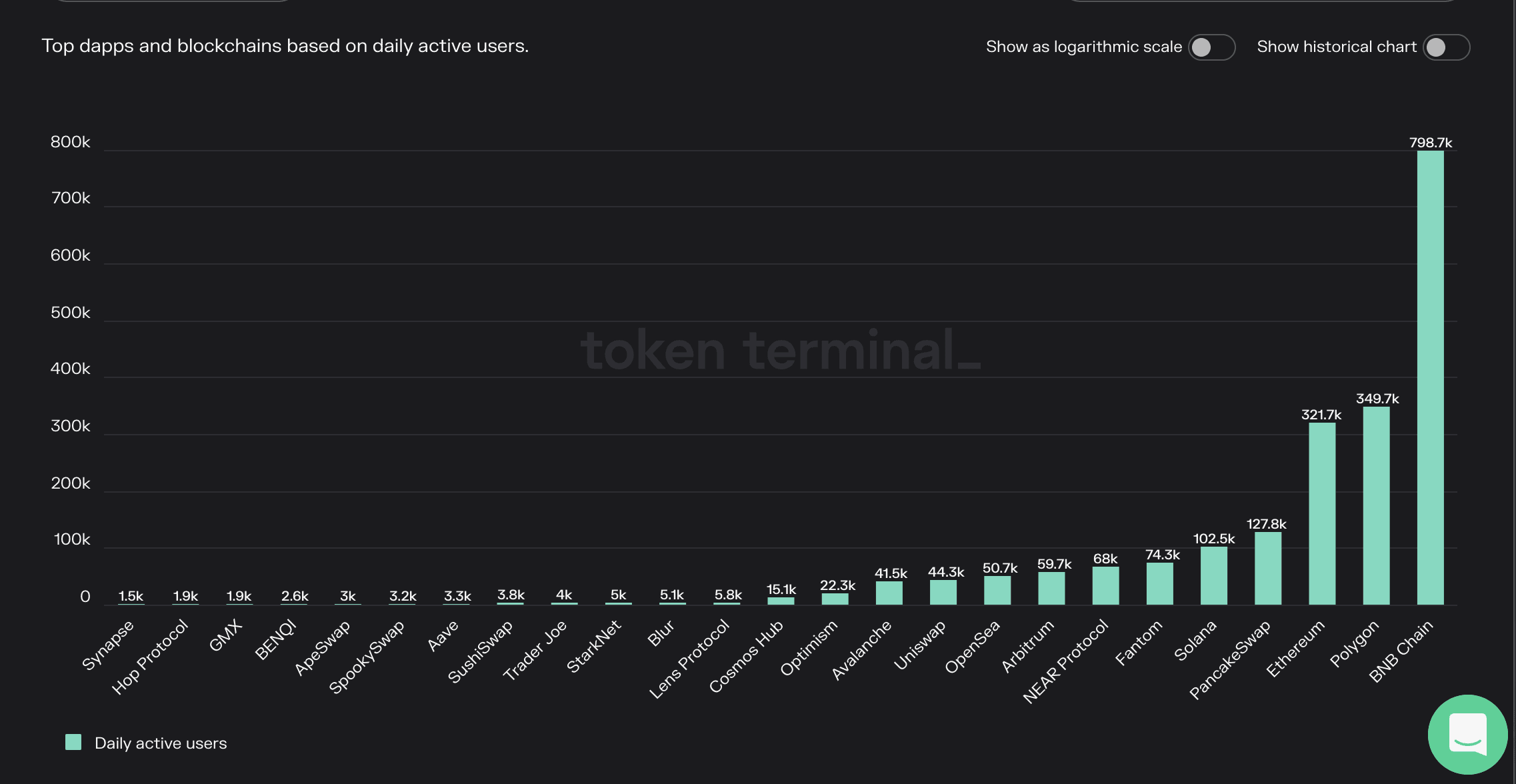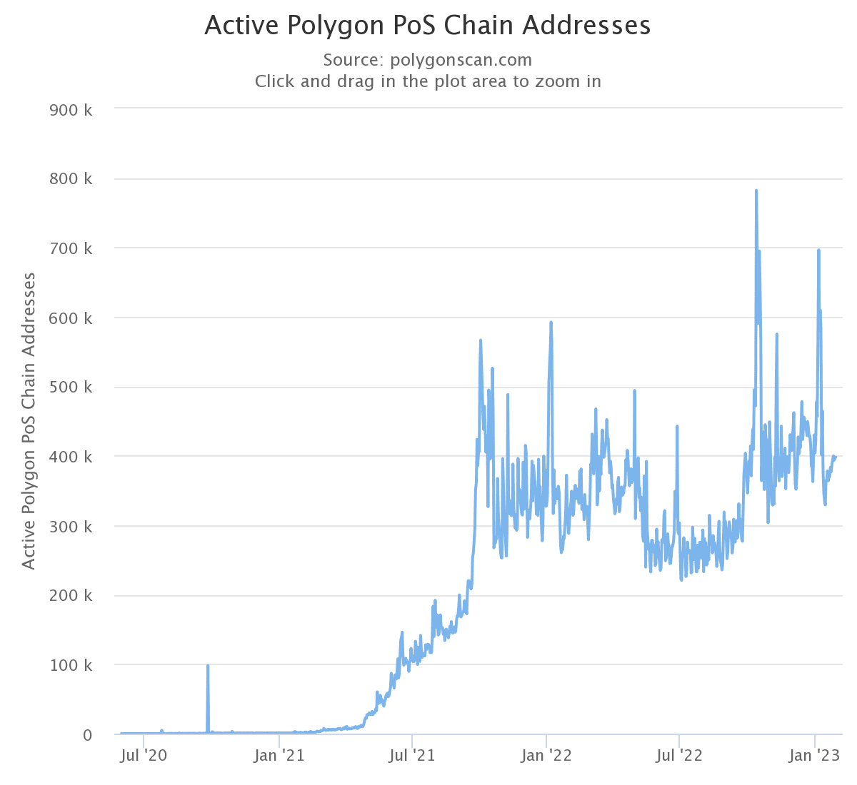 Podle blockchainových prohlížečů Polygon z hlediska počtu denně aktivních adres usilovně soupeří o druhé místo s Ethereem, druhou největší kryptoměnou dle tržní kapitalizace. Podle Token Terminalu a jejich metriky DAU (Daily Active Users) je Polygon nyní dokonce na druhém místě s počtem 349 000 adres v době psaní článku, Ethereum má přitom pouze 321 000. Na prvním místě je s velkým náskokem blockchain BNB Chain s téměř 800 000 uživateli.