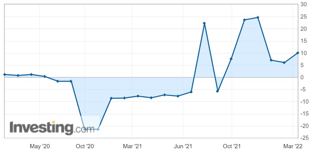 Meziroční hrubý domácí produkt (HDP) Spojeného království měl slušný náskok oproti očekávání, protože britská ekonomika se po prosincovém řádění Omicronu opět vracela zpět. V lednu rostla všechna odvětví v porovnání s úrovněmi před pandemií. Aktuálně je o 0,8 % vyšší.