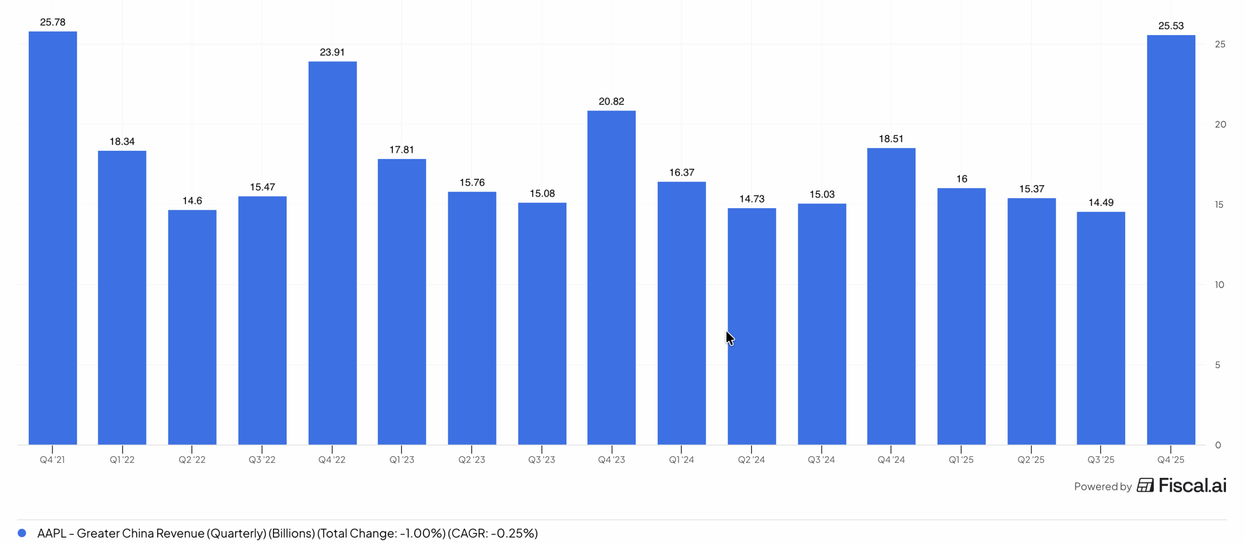 Velkou novinkou je výrazné oživení prodejů ve Velké Číně. Tržby v tomto regionu meziročně vystřelily o 38 % na zhruba 25,5 miliardy dolarů.