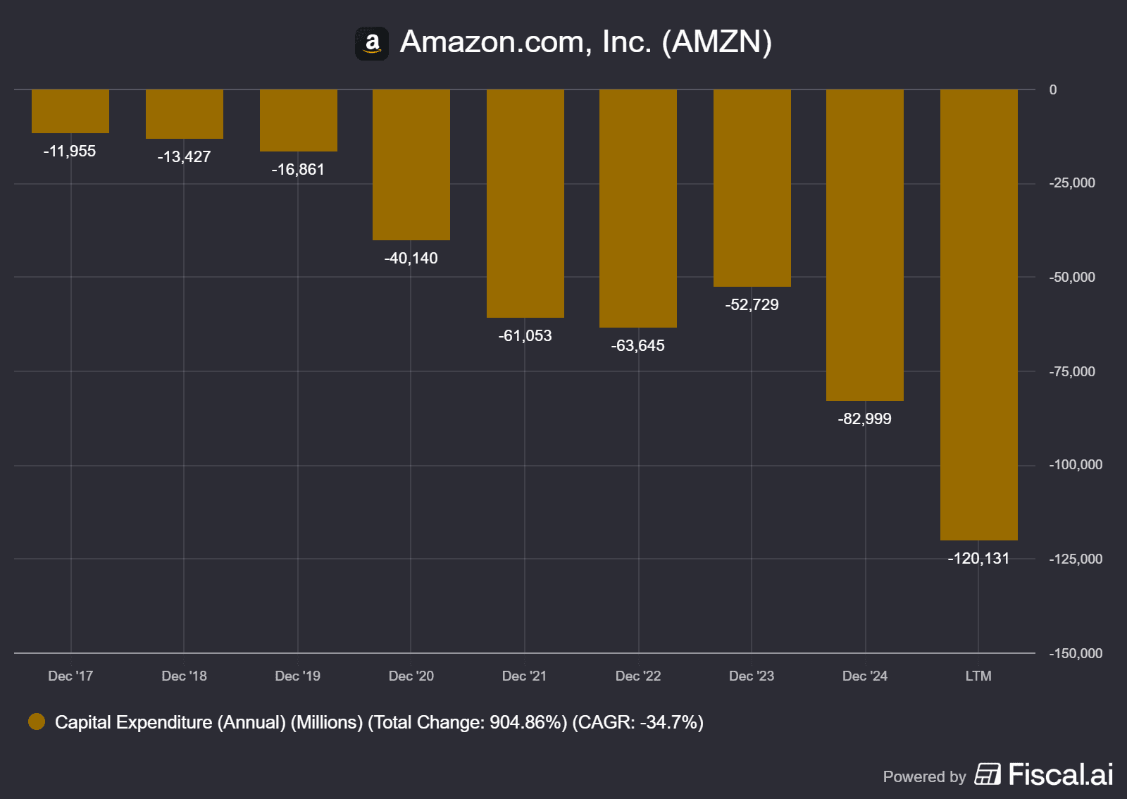 Vývoj Capexů u Amazonu v průběhu let