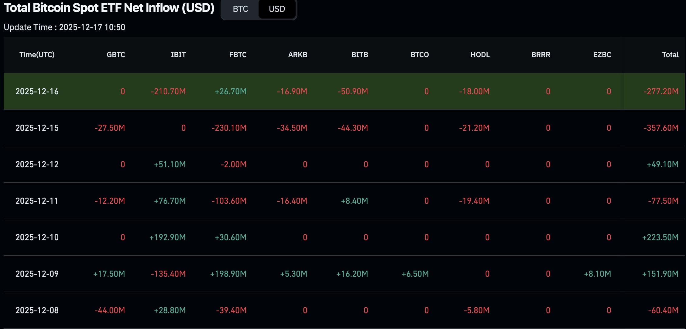 Poptávka po spotových Bitcoin ETF již neudržuje cenovou úroveň jako během většiny roku 2025.