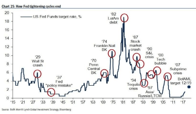 Zvyšování sazeb vždy znamenalo recesi/krizi