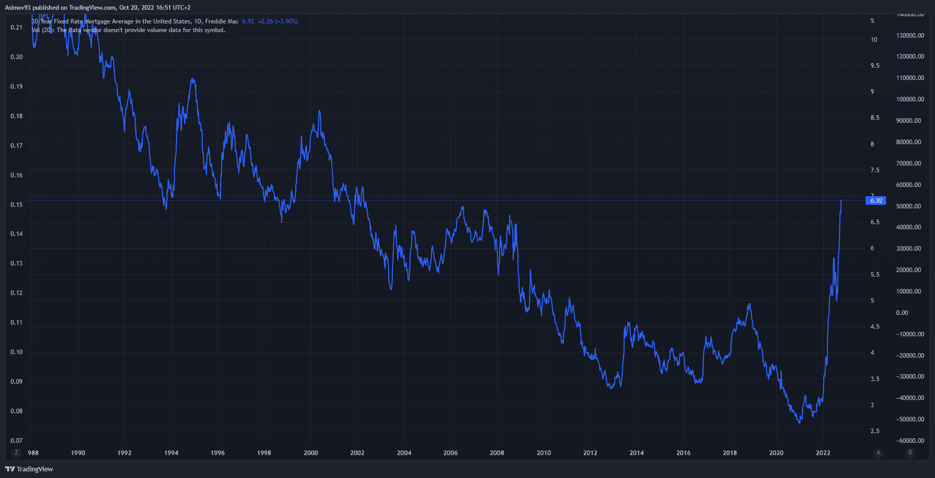 A není divu, že poptávka po hypotékách rapidně klesá. Průměrná úroková sazba na 30letých hypotečních úvěrech vzrostla skoro na 7 %. Tedy na úrovně, kde byla sazba posledně v roce 2002. Jde ale hlavně o to, jak rychle sazba roste. Mimochodem, růst sazeb na hypotékách i odráží jistou nedůvěru ze strany komerčních bank v budoucí ekonomický vývoj.
