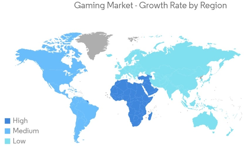 Možná to čtenáře překvapí, ale nejvíce je hraní her oblíbené v Africe. Poté následuje Severní a Jižní Amerika a nejnižší popularita hraní her je zaznamenána v Evropě, Asii a Austrálii. Ovšem hraní her v posledních letech výrazně změnilo směr, kdy hráči přešli z osobních počítačů a konzolí na mobilní hry. Nástup trendu mobilního hraní je urychlen příchodem 5G sítí, ke kterým má přístup již více než 7 % světové populace.