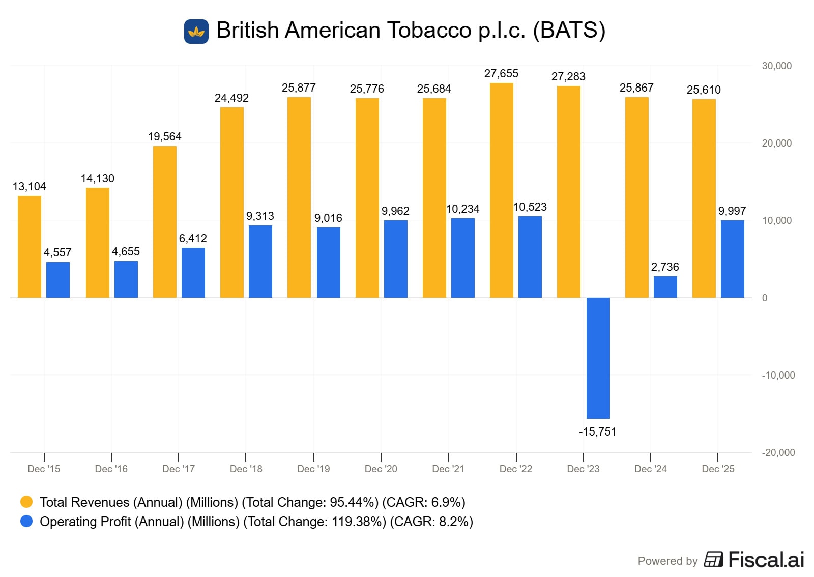 Výjimkou je rok 2023, kdy firma vykázala výraznou provozní ztrátu přibližně 15,7 miliardy liber.