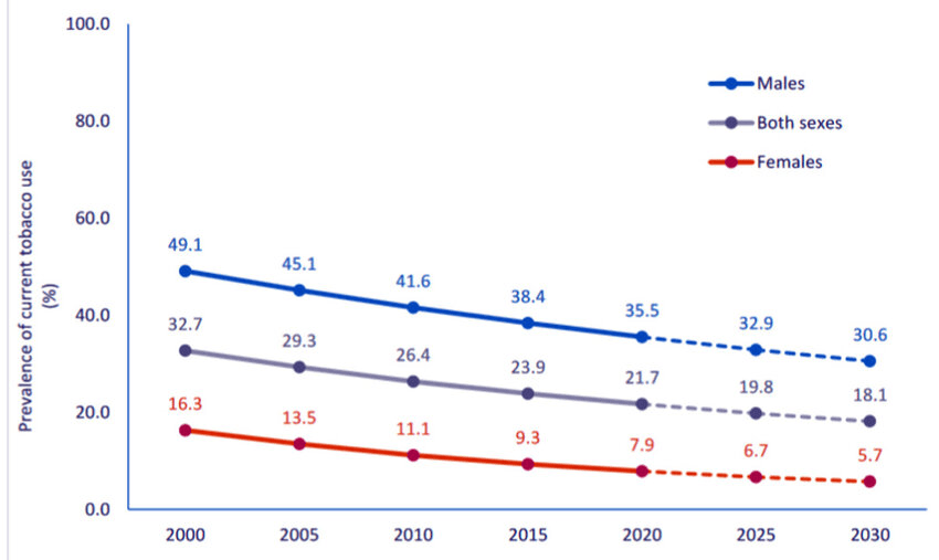 Důležité je, že i když klesá procentuální podíl kuřáků, tak to nutně neznamená, že stejným tempem klesá i jejich celkový počet. Kvůli růstu světové populace je na světě stále přibližně 1,2 miliardy uživatelů tabáku.