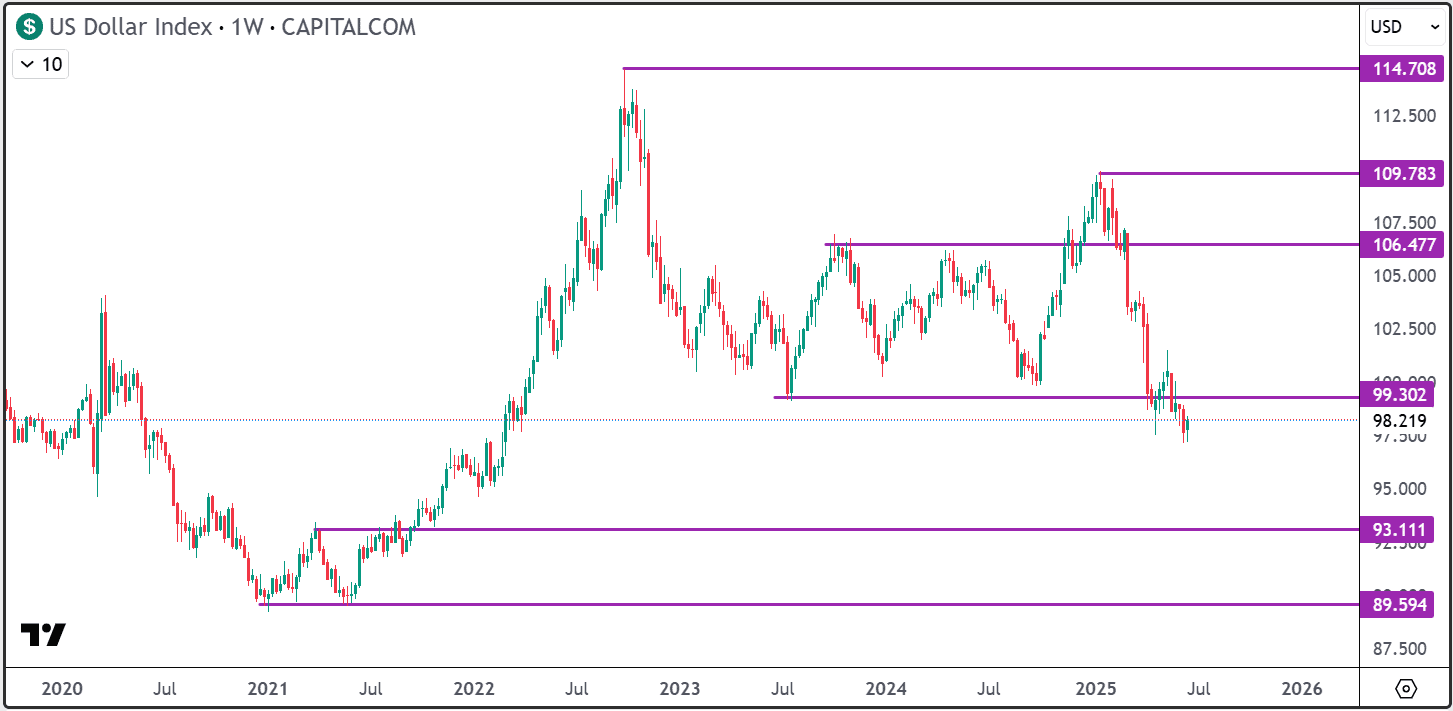 Dollar index na týdenním grafu