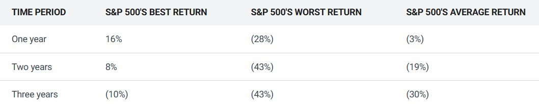 Pokud by se historie opakovala podle průměrných hodnot, index S&P 500 by do února 2027 odepsal 3 %, do února 2028 19 % a v únoru 2029 by byl o celých 30 % níže.