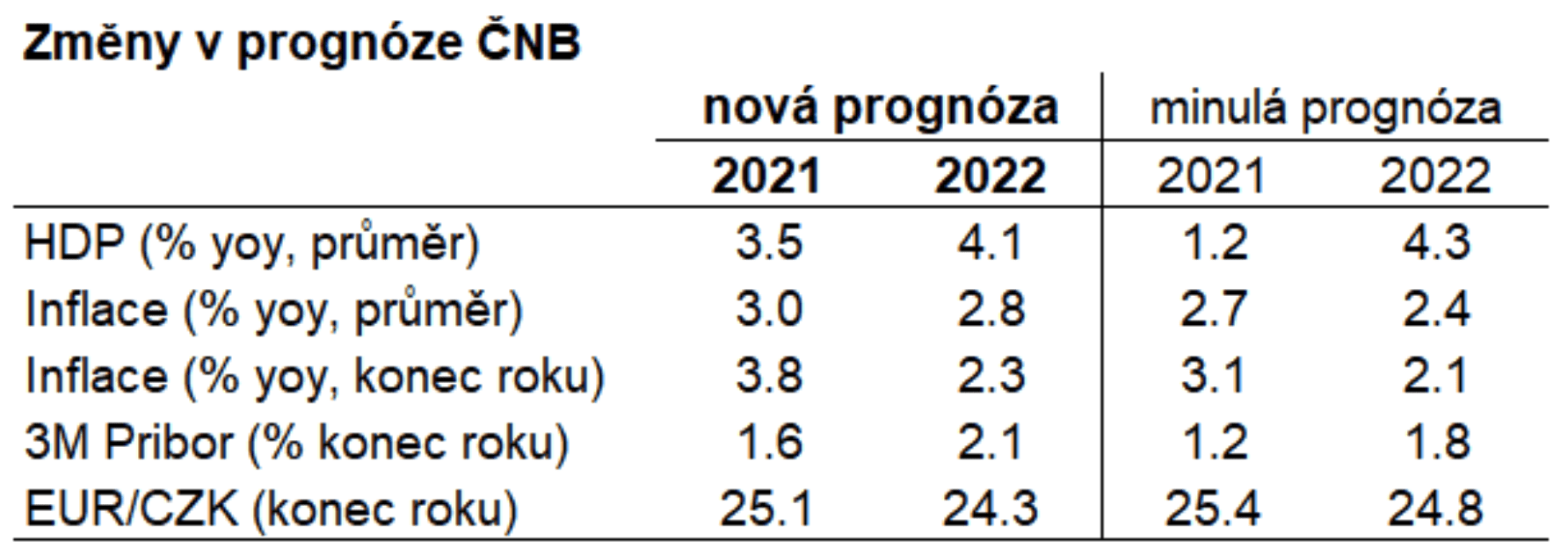 Změny v prognóze ČNB