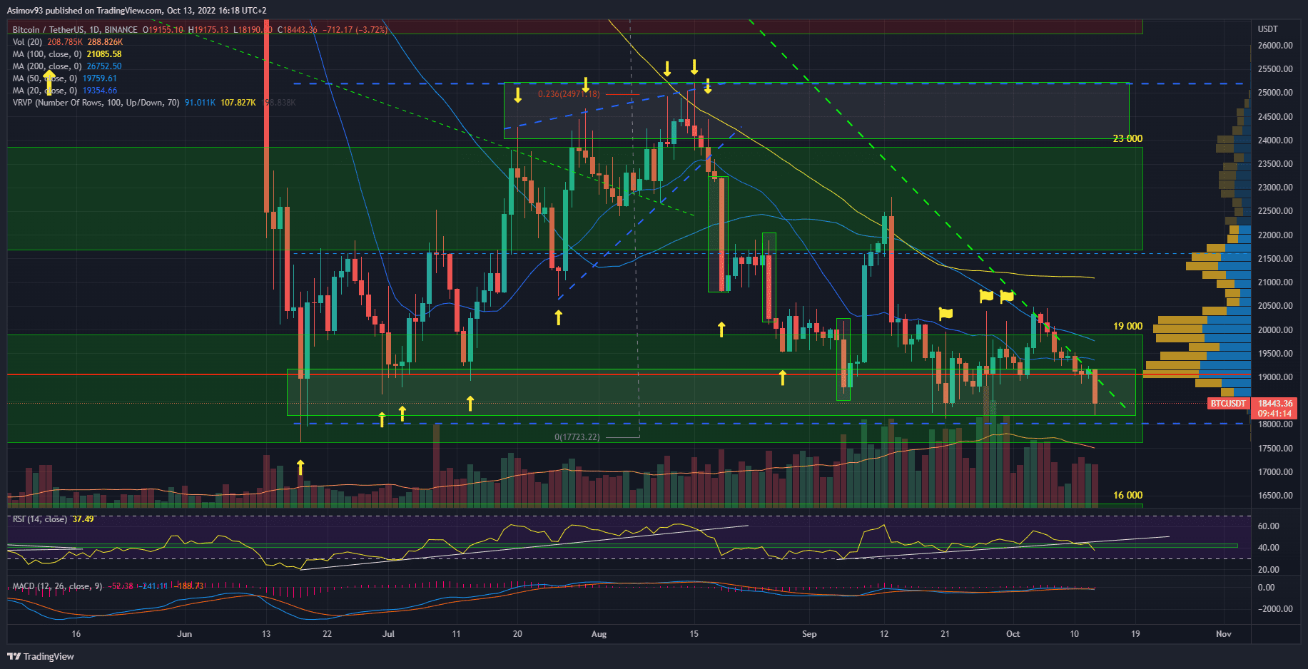 V každém případě medvědí trh v těchto chvílích pokračuje. Tím průlomem skrze říjnové low to máme dle Dow teorie i potvrzené. Pouze mne překvapuje, že Bitcoin se stále drží. Čekal jsem, že při překonání klíčových supportů na akciových indexech, Bitcoin prorazí svůj support kolem 19 000 USD. Zatím se nestalo.