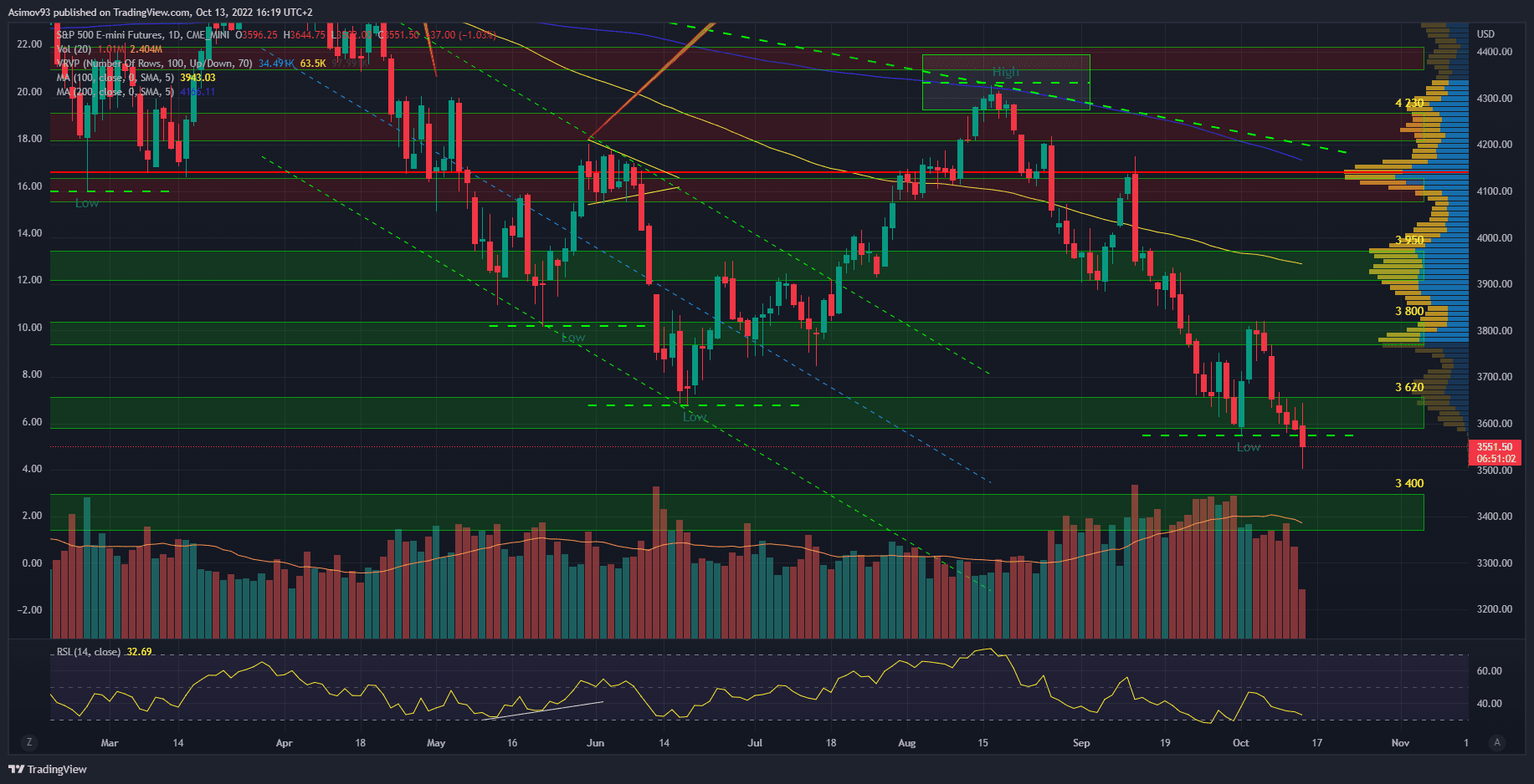 Na akciových trzích byl vývoj též výživný. Jakmile se svezlo krypto, akciové indexy šly dolů hned v závěsu. Kurz indexu S&P 500 se propadl pod low z 3. října. Spolu s tím došlo k průlomu klíčového supportu, který se nachází kolem 3 620 bodů. Pokles se následně zastavil. Další relevantní úroveň je až na 3 400 bodů.