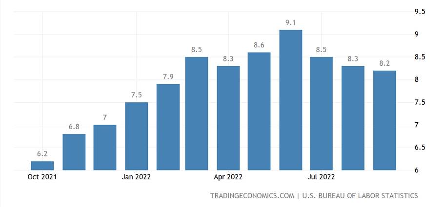 Konečně byla zveřejněna netrpělivě očekávaná inflační data z USA za září. Celková inflace mírně klesla. Ale pořád je nad konsensem trhu, což bylo zhruba 8,1 %. A to je pro trhy velmi negativní informace. Data o inflaci totiž fungují jako proxy pro budoucí rozhodnutí Federálního rezervního systému. Respektive jakým tempem ještě úrokové sazby porostou.