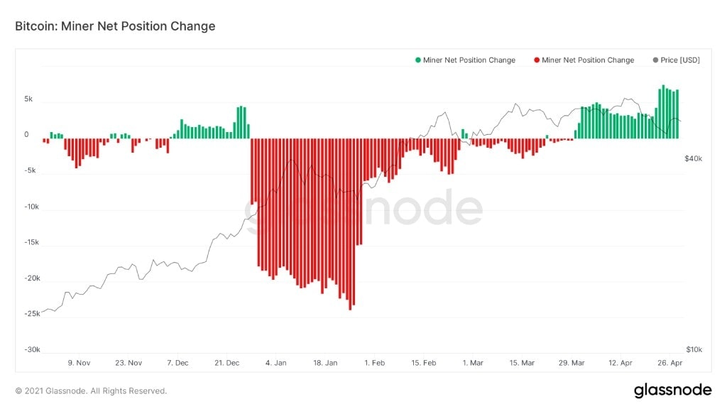 Jakmile ale Bitcoin překonal magickou hranici 20 000 dolarů a dále rostl, těžaři začali ve velkém prodávat, aby rostoucích cen využili, předtěžené bitcoiny prodali a ze zisků zaplatili elektřinu a modernizaci svých těžebních farem. Od března už ale prodeje dost opadly a těžaři naopak vyčkávají.