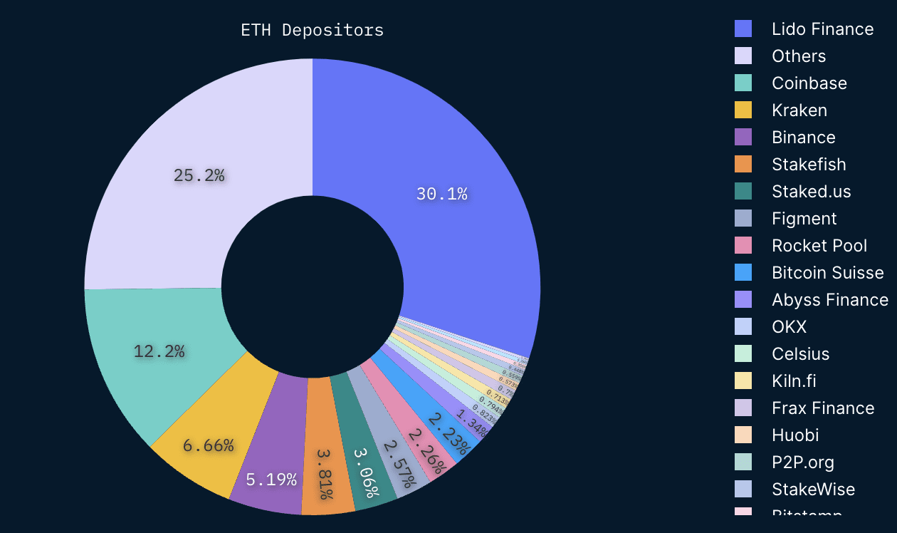 Pravděpodobně kvůli tomu, že si na její stakingové služby došlápl americký regulátor, přesněji Komise pro cenné papíry a burzu (SEC). V současnosti největší burzou, jejíž ethery jsou k dispozici pro výběr, je Coinbase, ta se ale dle onchainových dat do výběrů zatím nehrne.