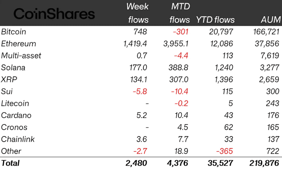 Koncentrace je vysoká, ale poptávka po těchto fondech klesá. V srpnu zaznamenaly bitcoinové investiční produkty podle dat CoinShares čistý odliv ve výši 301 milionů dolarů, zatímco fondy vázané na Ethereum se těší přílivu kapitálu.