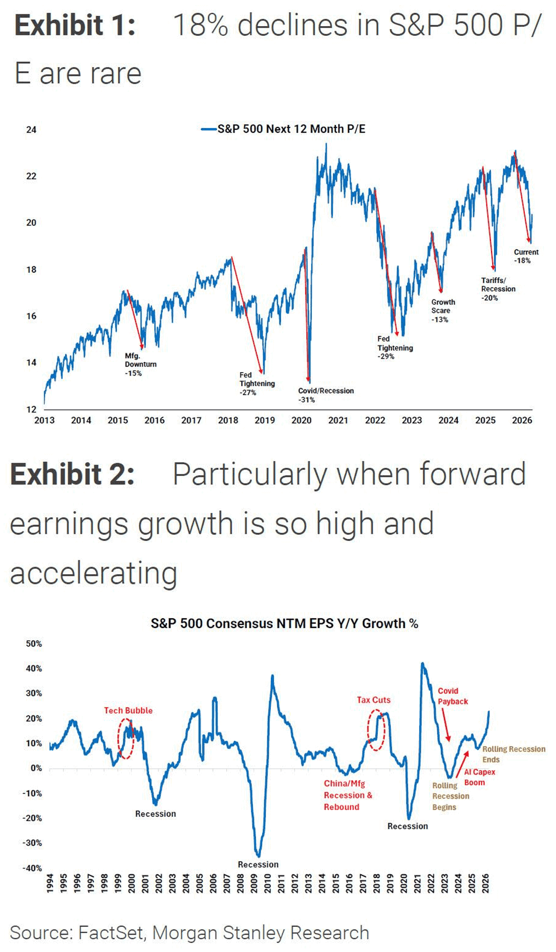 V takové situaci totiž trh vůbec neoceňuje realitu. Čím vyšší tato očekávání jsou, tím menší prostor zůstává pro reálné chyby a zakolísání. Případné přeceňování (repricing) pak bývá nesmírně bolestivé a ceny padají velmi strmě dolů.