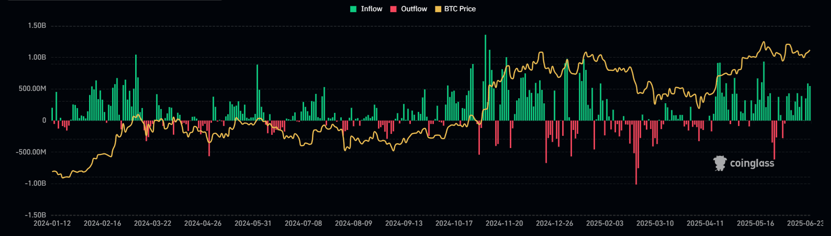 Za posledních 12 dní počínaje 10. červnem nashromáždila bitcoinová ETF od investorů přes 2,5 miliardy dolarů.