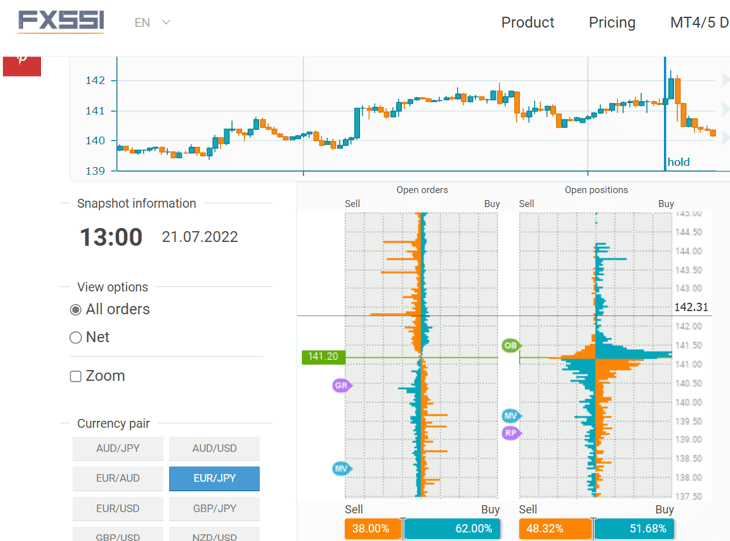 Na páru EUR/JPY byl velký objem objednávek na hladině 142,31.