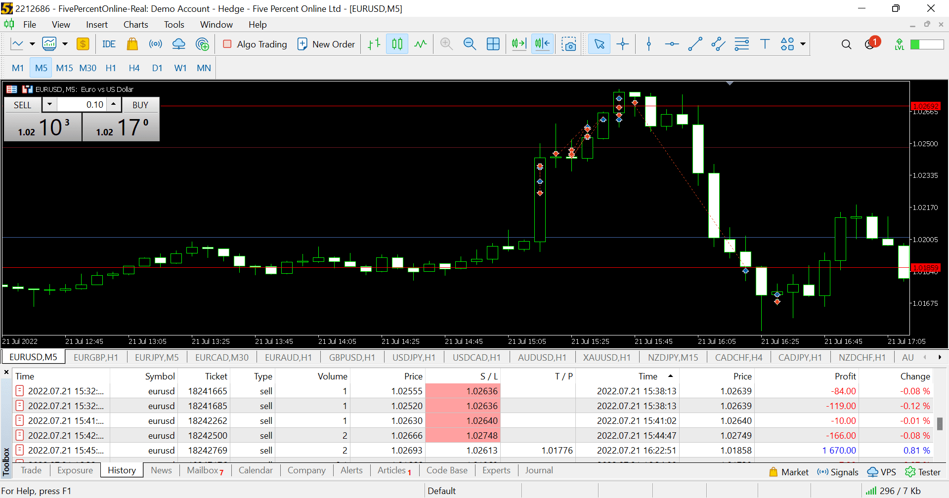 S kůží na trh jsem tedy dne 21. 7. 2022 šel s úvahou, že počkám, až euro po publikaci zprávy posílí a pak budu spekulovat na jeho pokles. ECB trh překvapila, když rozhodla o zvýšení úrokové sazby o 0,50 %. Trh očekával zvýšení o 0,25 %.