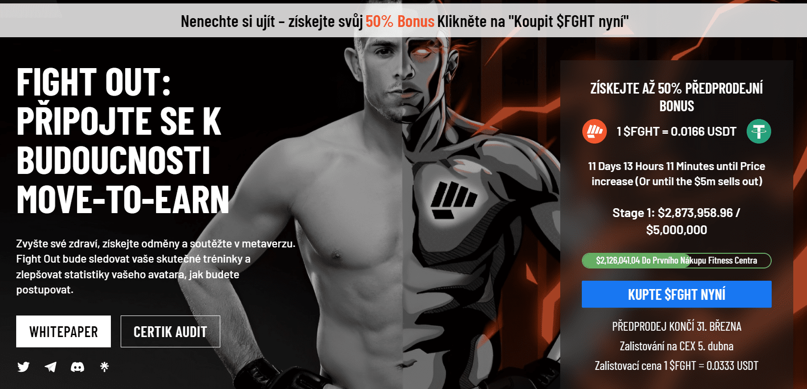 Nová kryptoměna Fightout se nyní nachází v předprodeji. Tato platforma disponuje obrovským potenciálem do budoucna z hlediska jejího využití a globální adaptace. Jedná se o jedinečný move-to-earn projekt, jenž v současné době představuje zajímavou investiční příležitost.