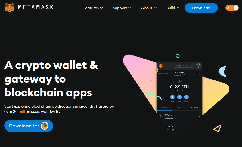 Prvním krokem, který je třeba udělat, je vytvoření vaší vlastní krypto peněženky. K pohodlnému nákupu a manipulaci s peněženkou doporučujeme Metamask nebo TrustWallet. Peněženku Metamask můžete stáhnout jako mobilní aplikace pro iOS nebo Android nebo nainstalovat jako rozšíření do vašeho prohlížeče – tuto volbu doporučujeme, jelikož se vám s ní bude na platformě lépe manipulovat.