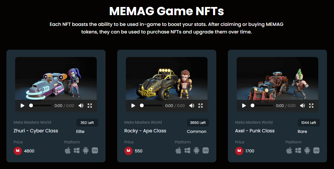 MEMAG je kryptoměna, která slouží jako nativní měna celého ekosystému Meta Masters Guild. S její pomocí můžete využívat stakingu, investovat do celé platformy nebo kupovat a prodávat NFT. Gemy získáte za účast v soutěžích nebo závodech a je následně možné je směnit za samotné MEMAG tokeny, čímž získáte reálnou kryptoměnu reálné hodnoty.