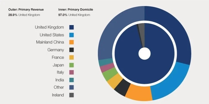 Rozložení tržeb v indexu FTSE 100 u britských rezidentů