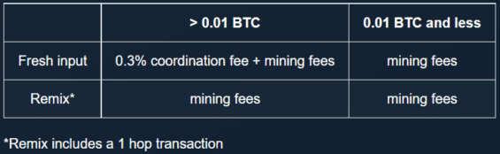 Aplikace má poplatkovou strukturu nastavenou velice přímočaře. Základní poplatek je platba těžařům za transakci. Těmto poplatkům se nelze vyhnout, neboť je potřeba provést přesun bitcoinů do CoinJoinu.