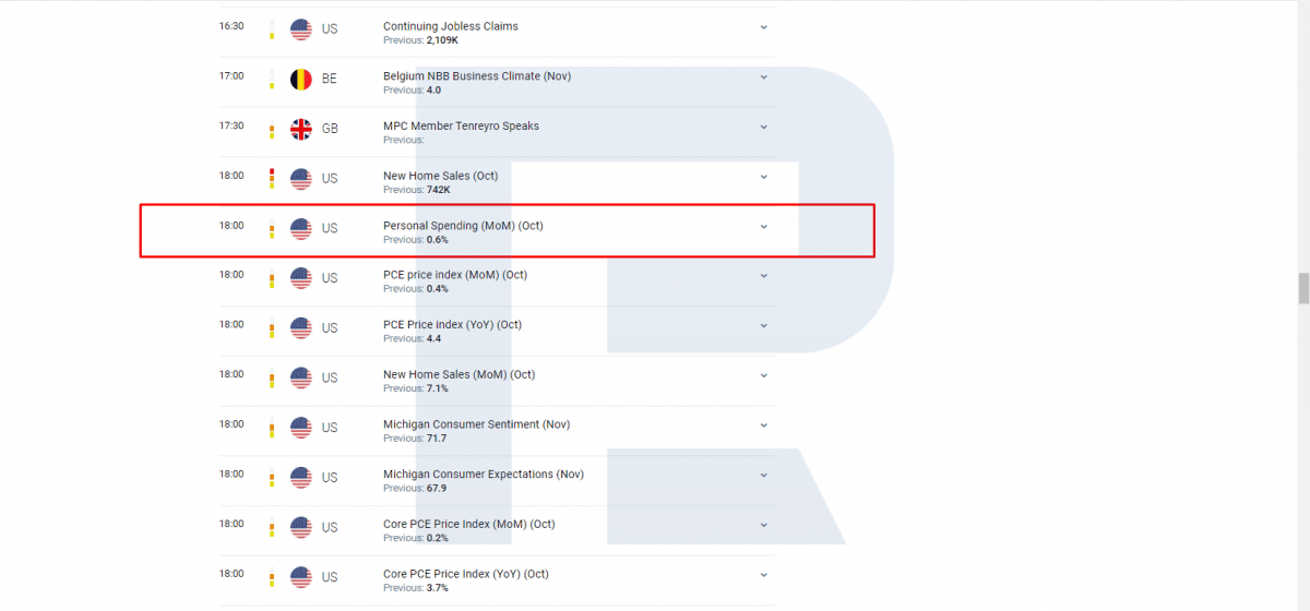 Osobní výdaje ukazují měsíční změny ve výdajích fyzických osob. Ukazatel v procentech vyhodnocuje, jak se změnily celkové výdaje lidí v zemi za sledovaný měsíc ve srovnání s předchozím měsícem. To zahrnuje všechny hlavní výdaje obyvatelstva: