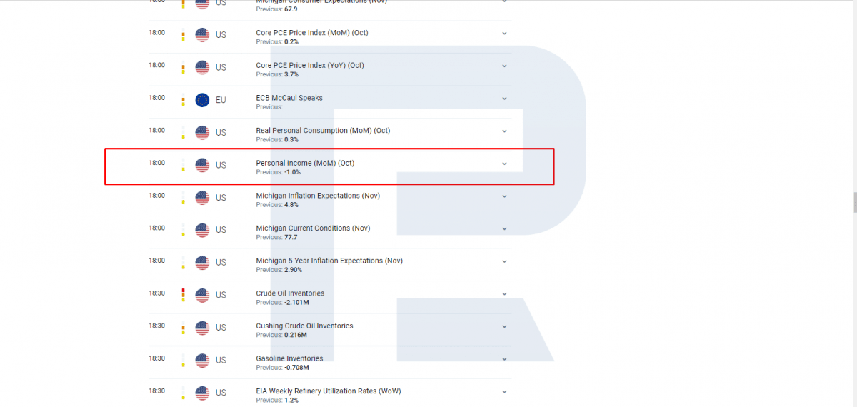 Zveřejnění osobních příjmů v makroekonomickém kalendáři