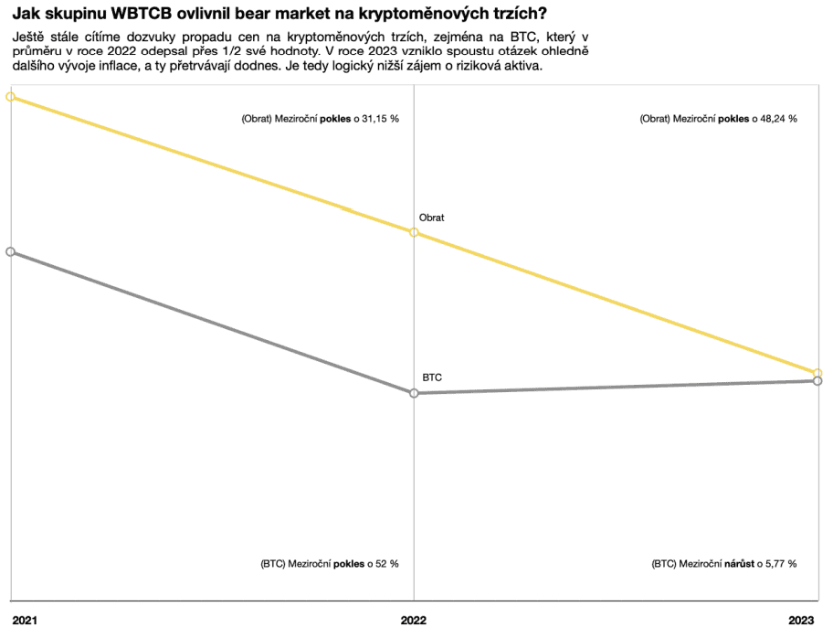 Ano, není to jednoduché. Z rekordního roku 2021, kdy jsme směnili krypto za více jak 2 miliardy Kč, jsme v roce 2022 klesly na 1,5 miliardy a v roce 2023 těsně k 1 miliardě.