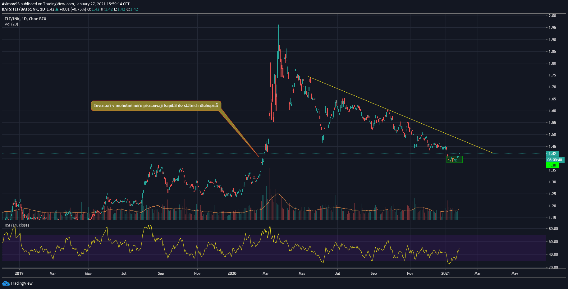 Cenový poměr státních dluhopisů vůči korporátním. Zdroj: tradingview.com